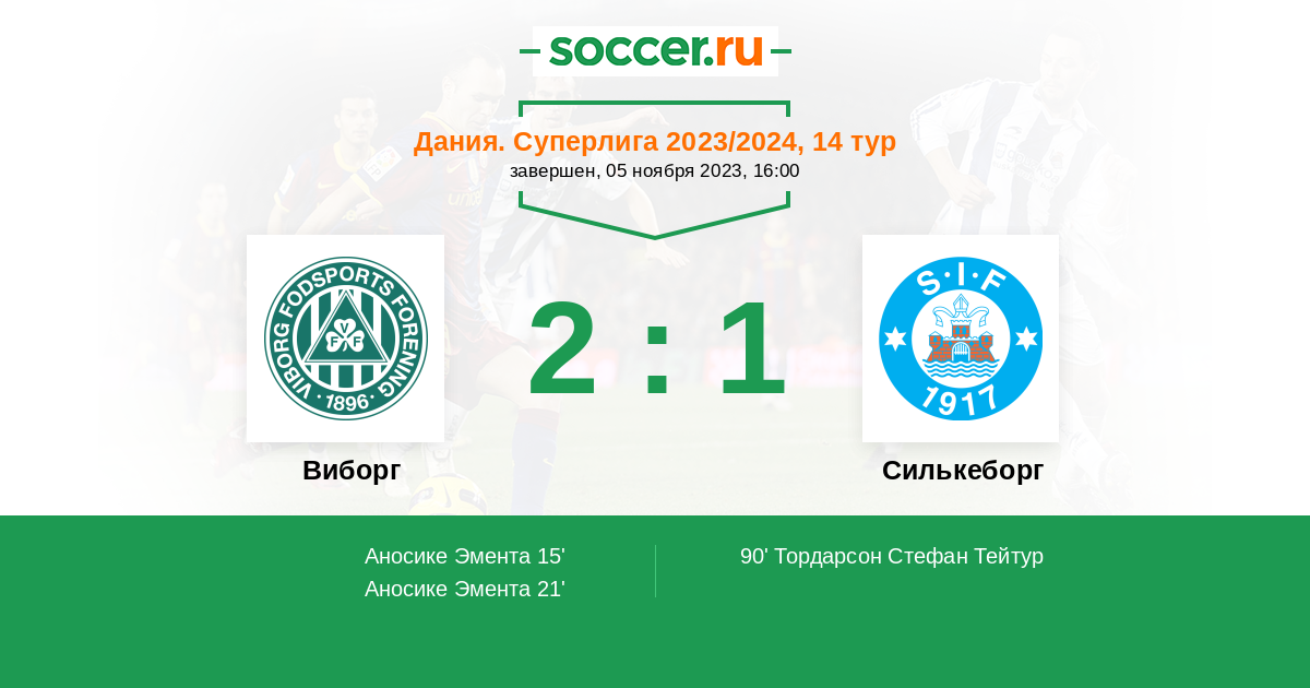 21' (2:0) Аносике Эмента (14) (Гроннинг Йеппе (13))