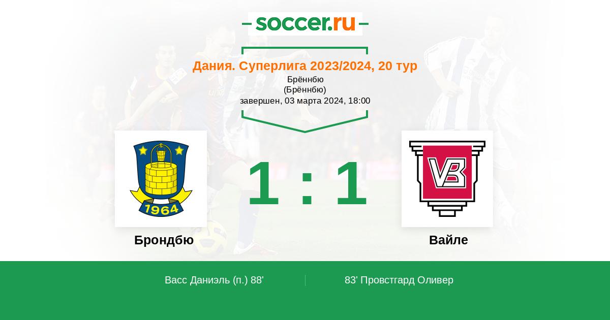 Протокол матча Брондбю против Вайле