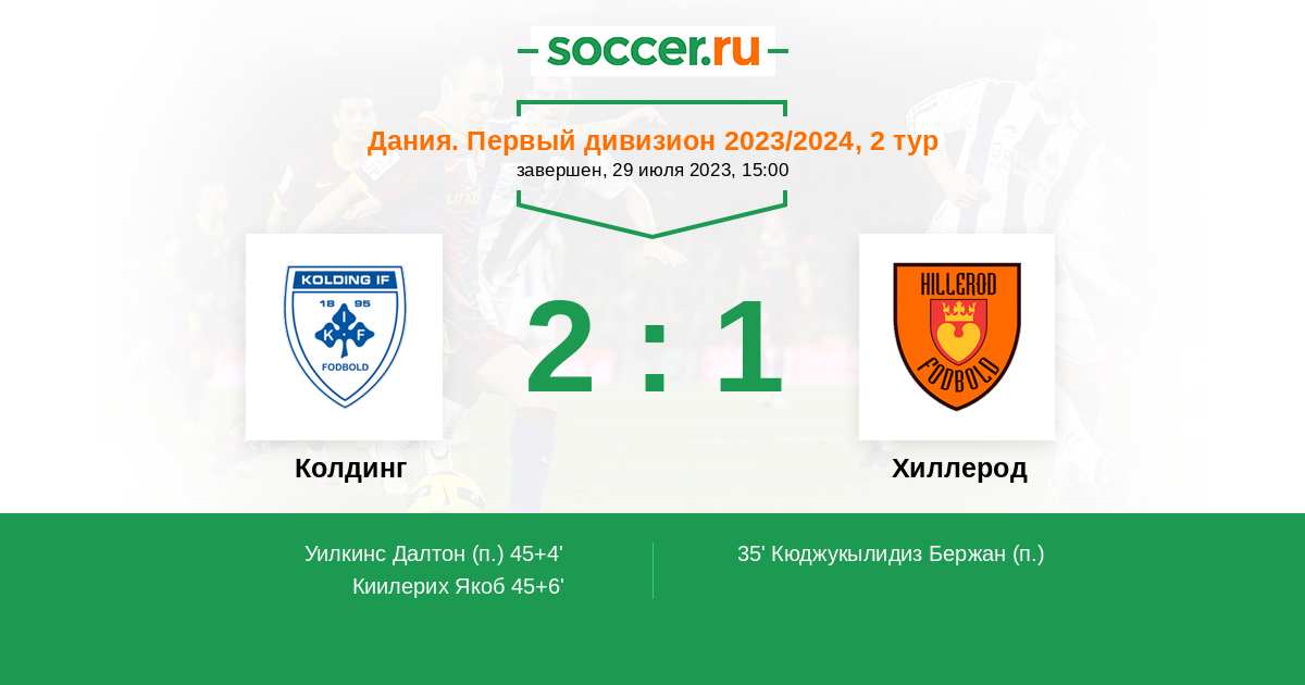 Гол45+6' (2:1) Киилерих Якоб (13) (Йесперсен Миккель (29))