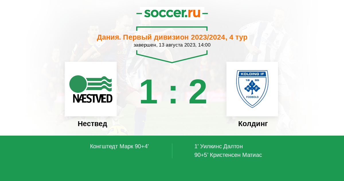 Протокол матча Нествед против Колдинг