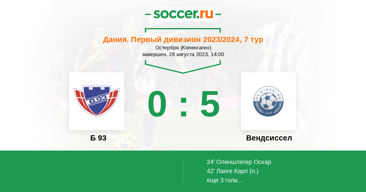 24' (0:1) Оленшлегер Оскар (20) (Стеффенсен Лассе (9))