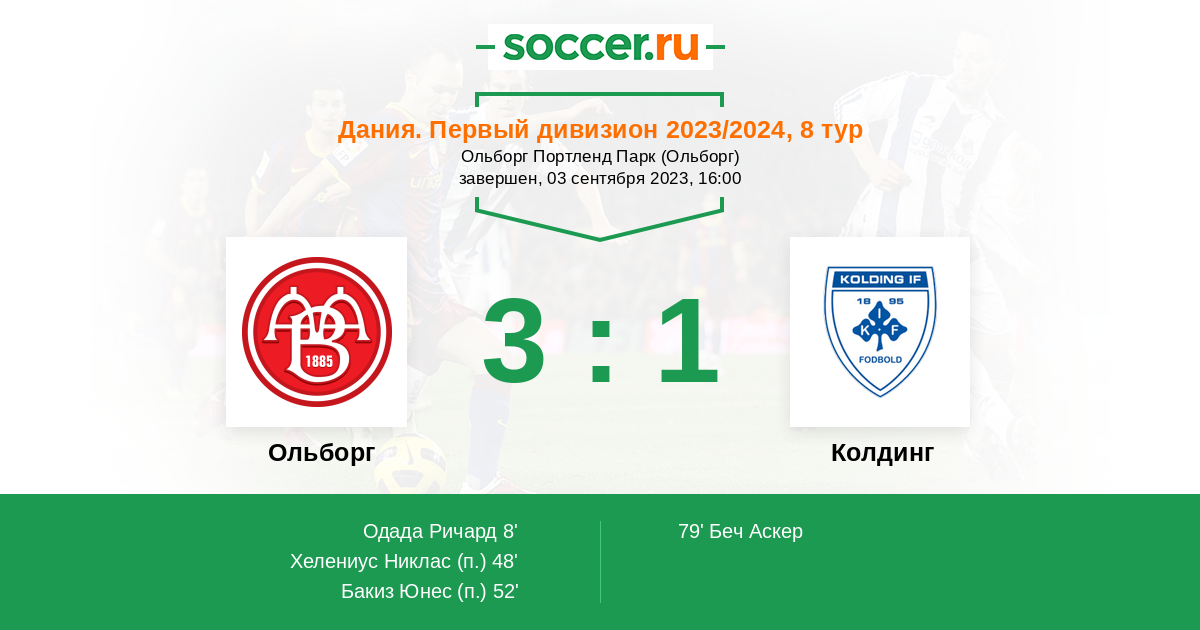 Протокол матча Ольборг против Колдинг