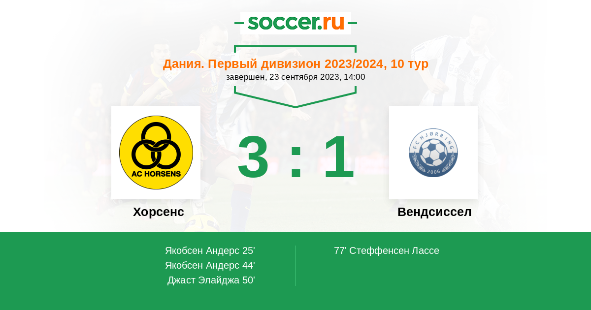 25' (1:0) Якобсен Андерс (9) (Анкерсен Якоб (7))