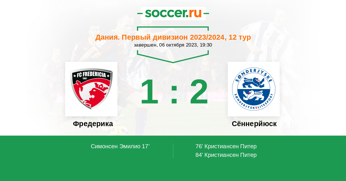 Протокол матча Фредерика против Сённерйюск