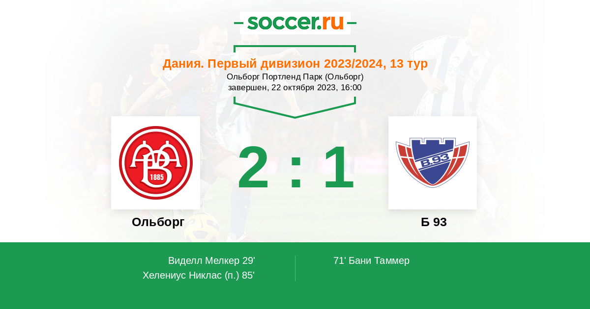 Протокол матча Ольборг против Б 93