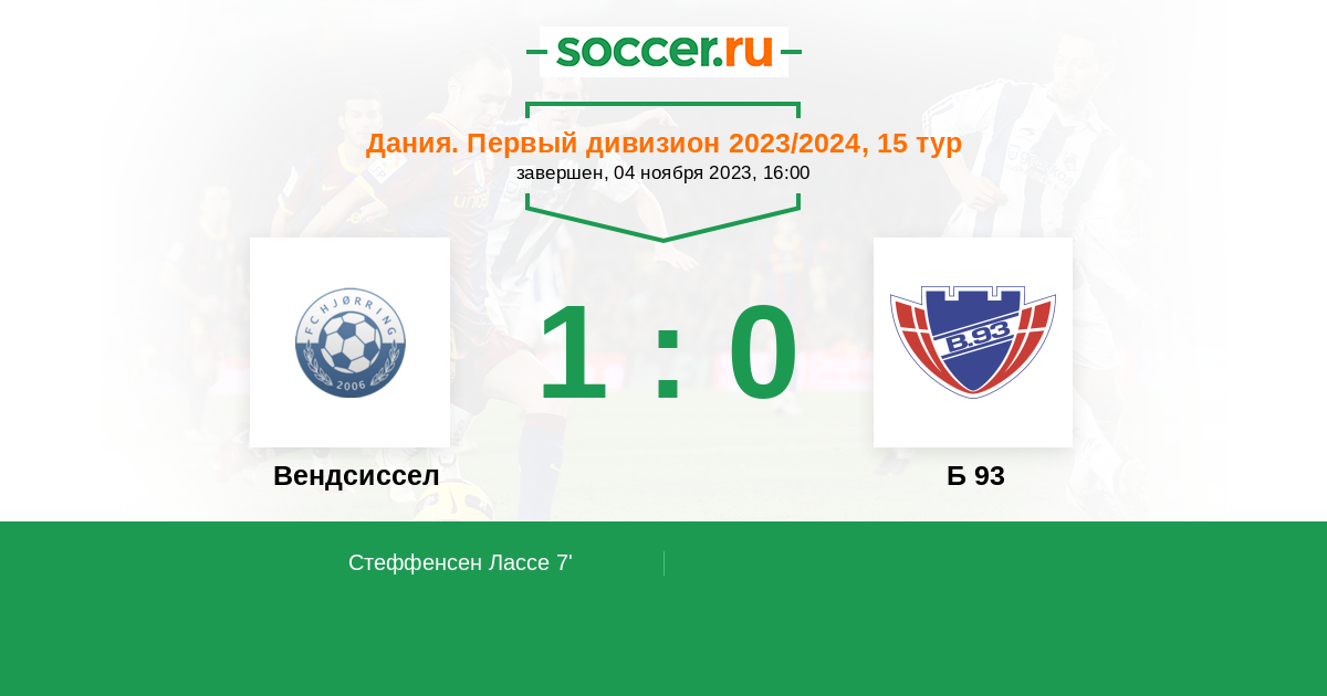 Протокол матча Вендсиссел против Б 93
