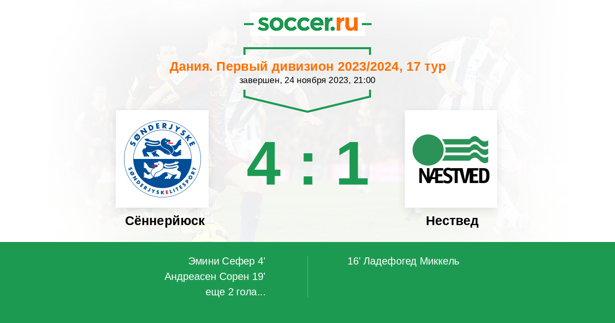 Протокол матча Сённерйюск против Нествед