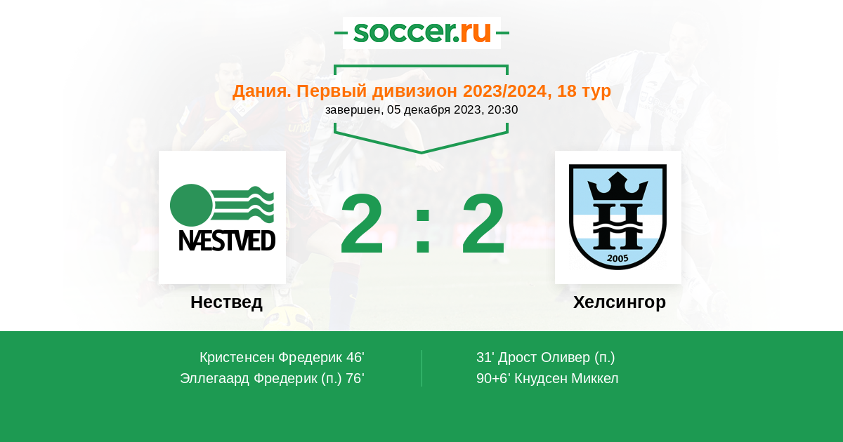Протокол матча Нествед против Хелсингор