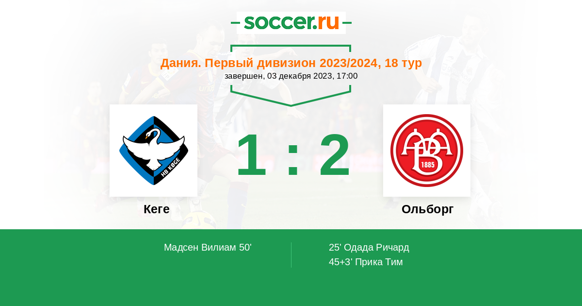 Протокол матча Кеге против Ольборг