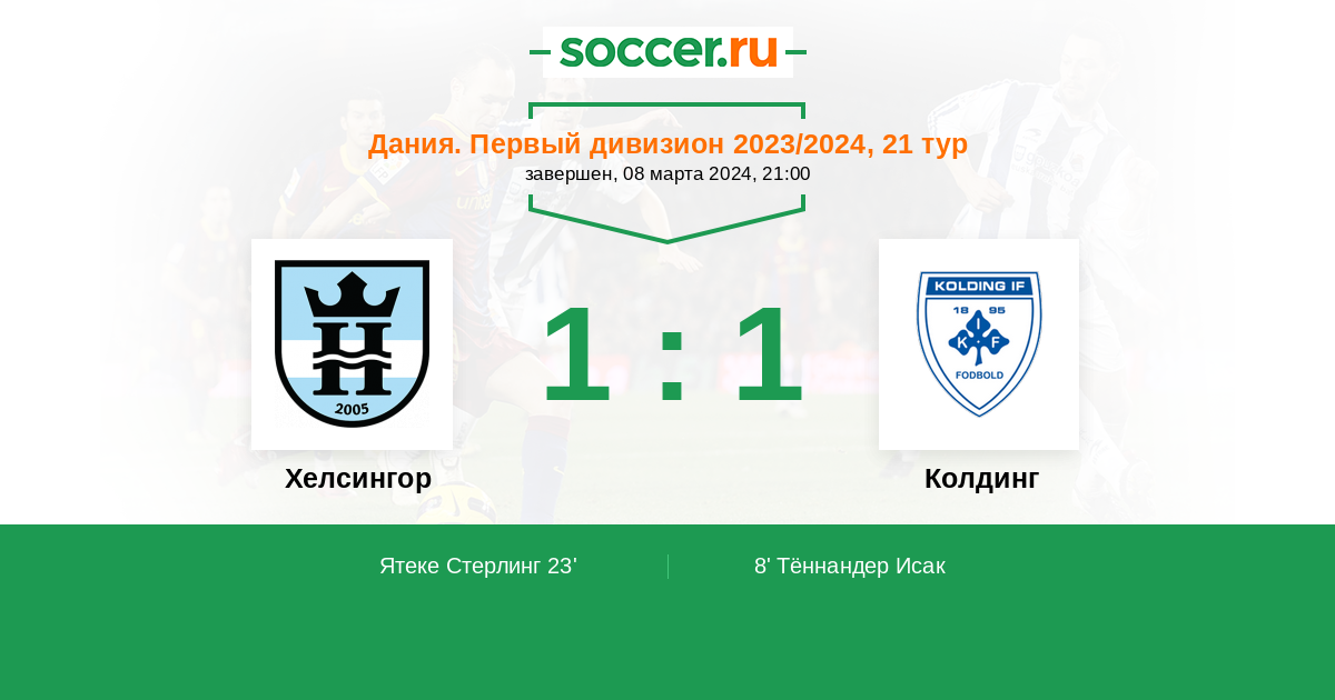 Протокол матча Хелсингор против Колдинг