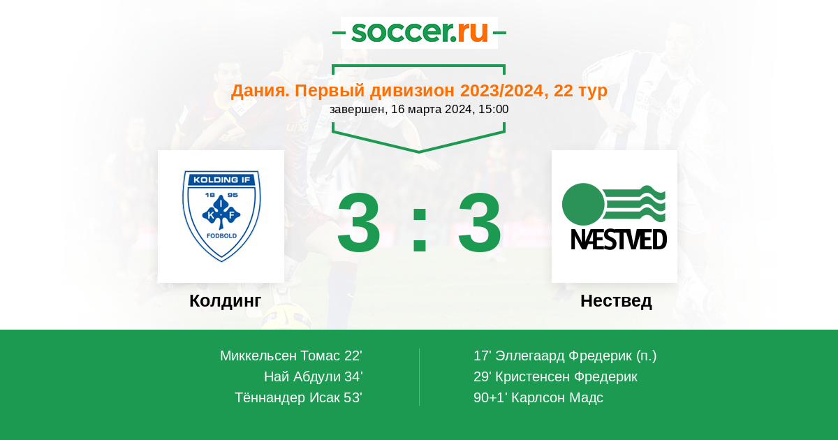 Протокол матча Колдинг против Нествед