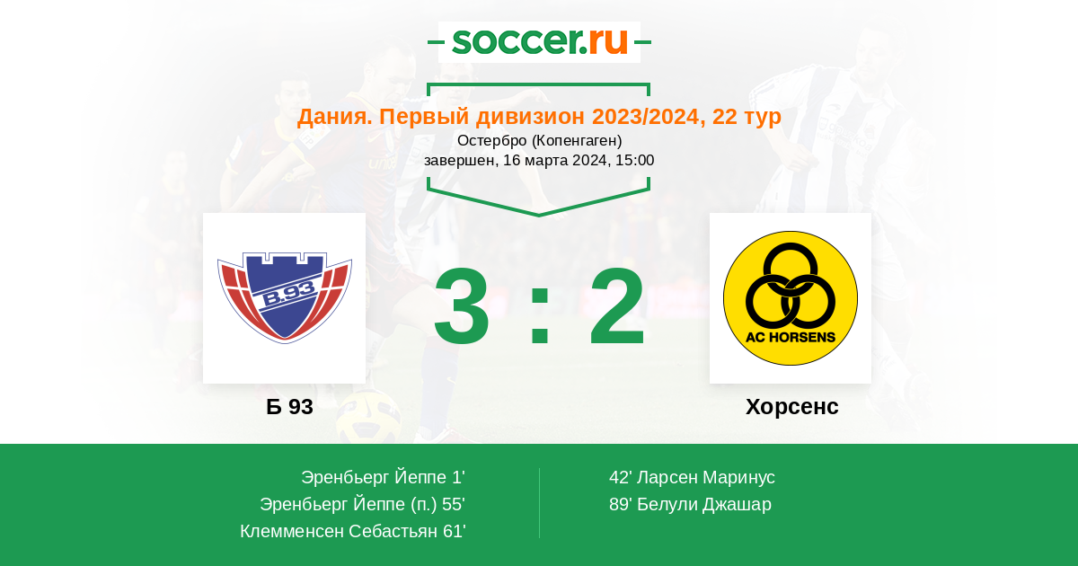 1' (1:0) Эренбьерг Йеппе (10) (Тогерсен Даниэль (3))