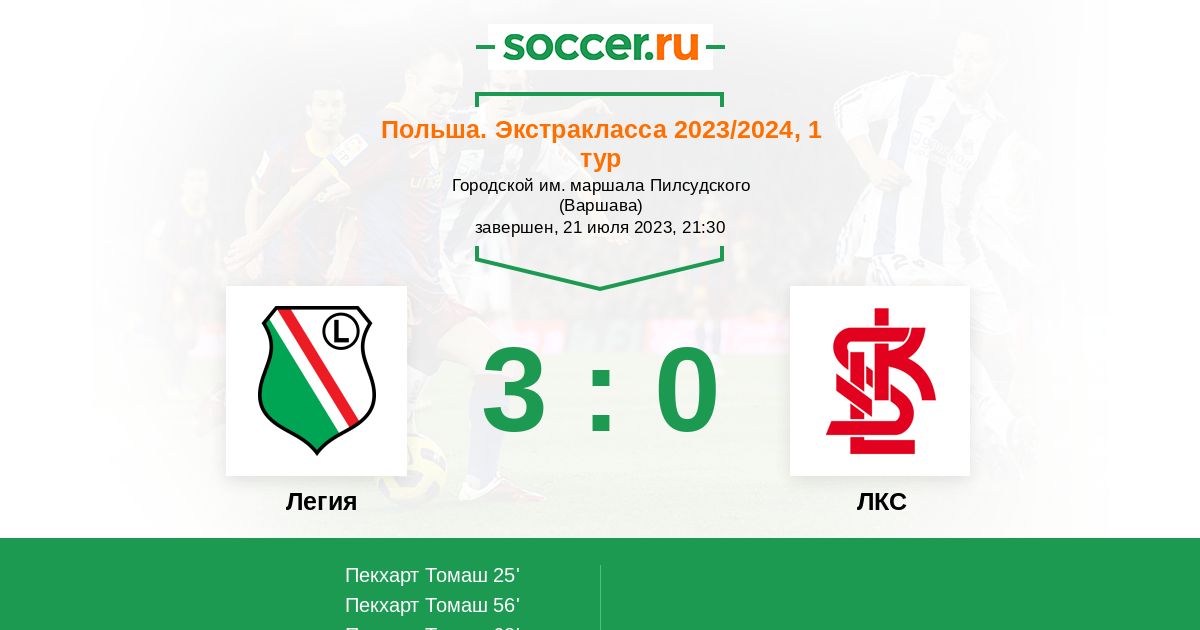 Протокол матча Легия против ЛКС