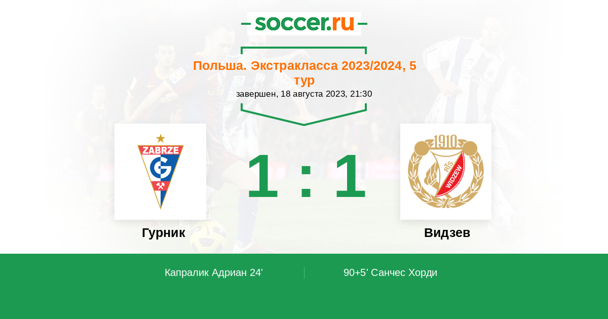 Протокол матча Гурник против Видзев
