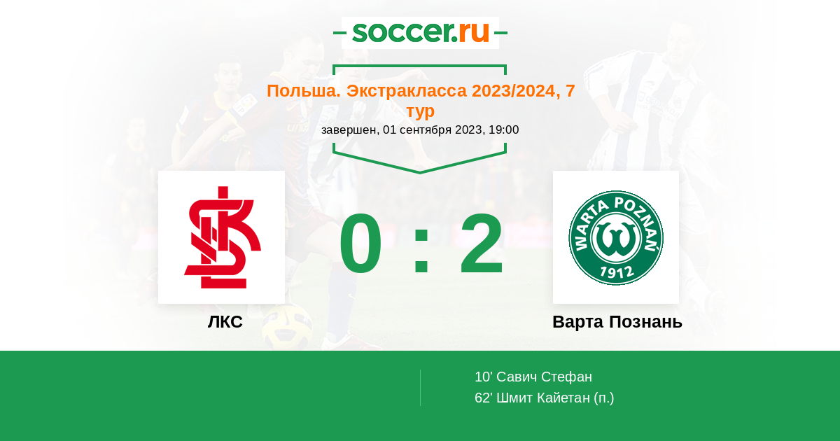 Протокол матча ЛКС против Варта Познань