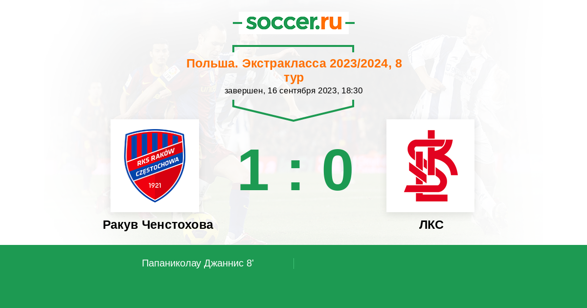 Протокол матча Ракув Ченстохова против ЛКС