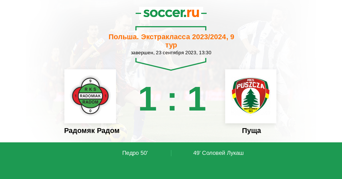 Протокол матча Радомяк Радом против Пуща