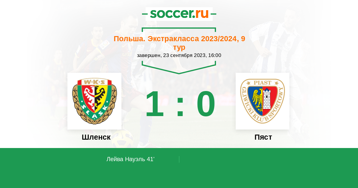 Протокол матча Шленск против Пяст
