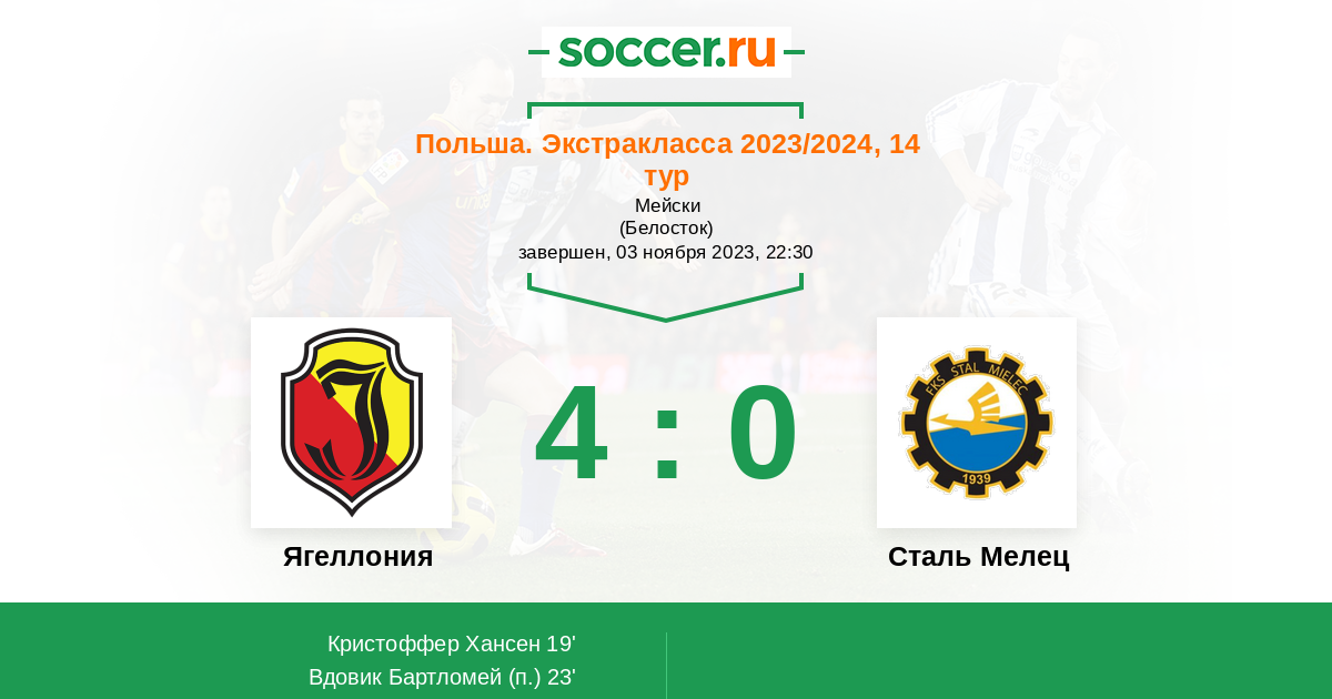 Протокол матча Ягеллония против Сталь Мелец