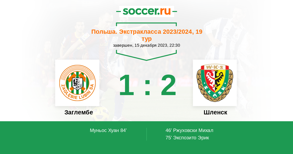 Протокол матча Заглембе против Шленск