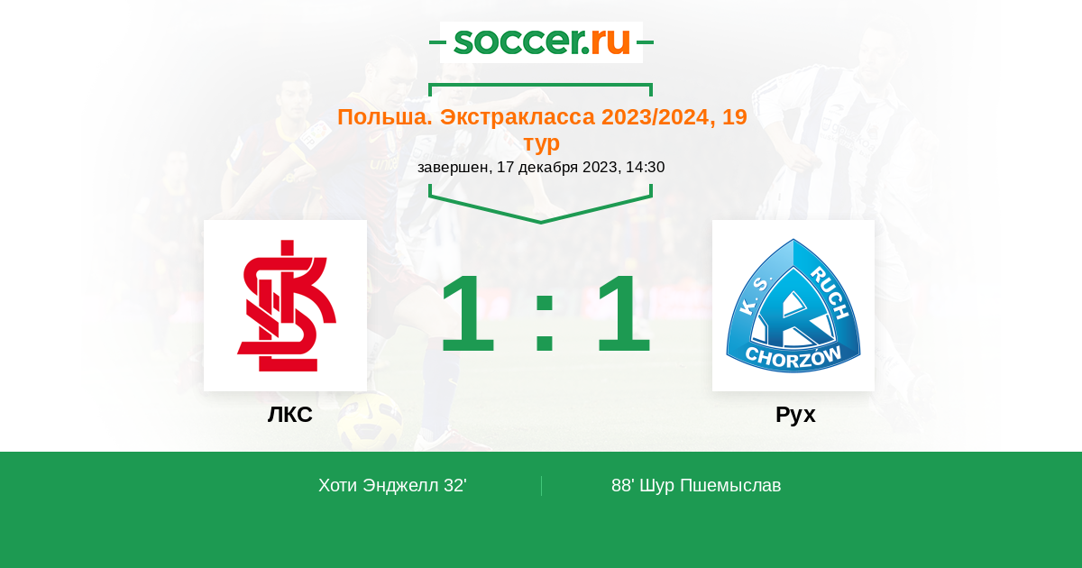 Протокол матча ЛКС против Рух