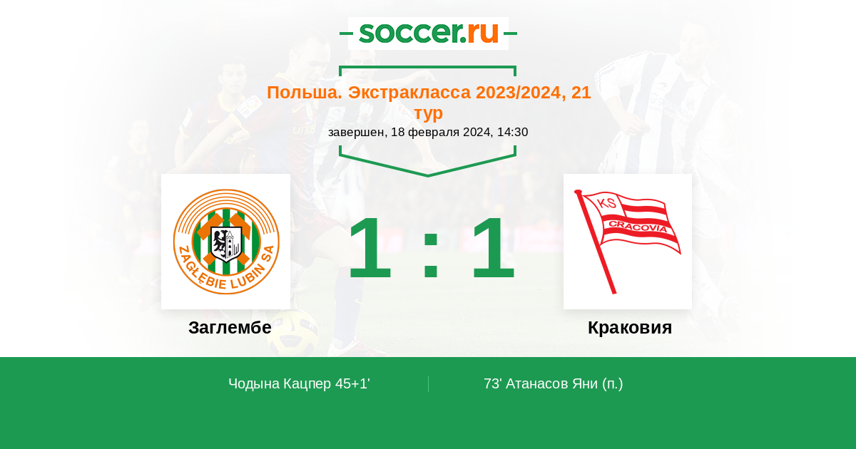 45+1' (1:0) Чодына Кацпер (7) (Маковски Томаш (6))