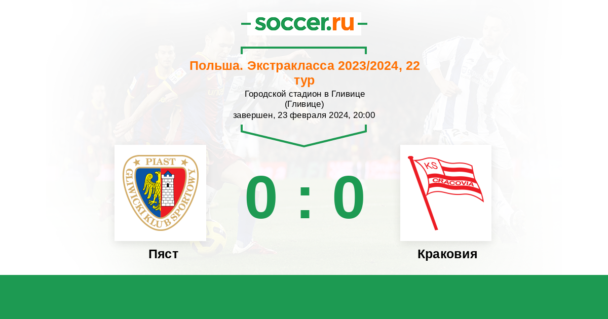 Протокол матча Пяст против Краковия