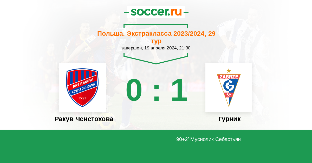 Протокол матча Ракув Ченстохова против Гурник