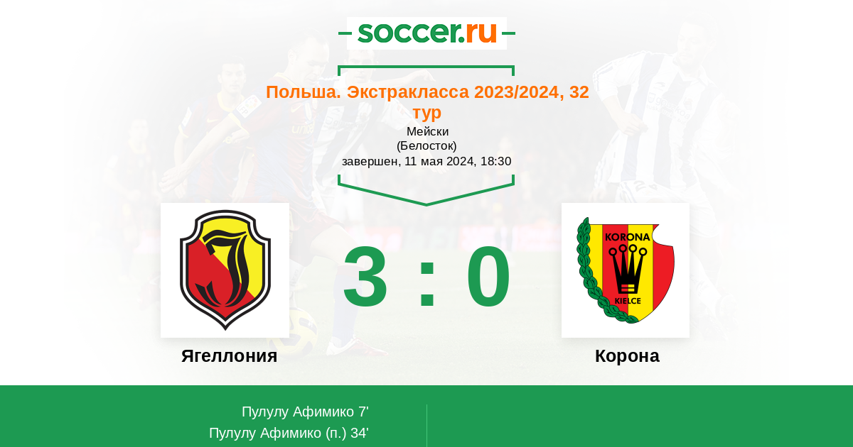 Протокол матча Ягеллония против Корона