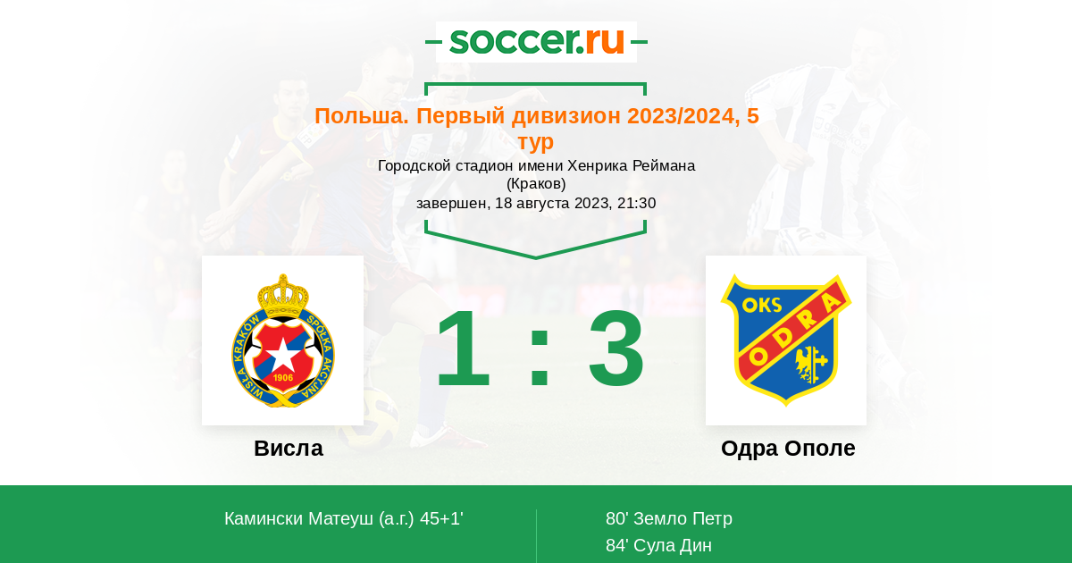 Протокол матча Висла против Одра Ополе