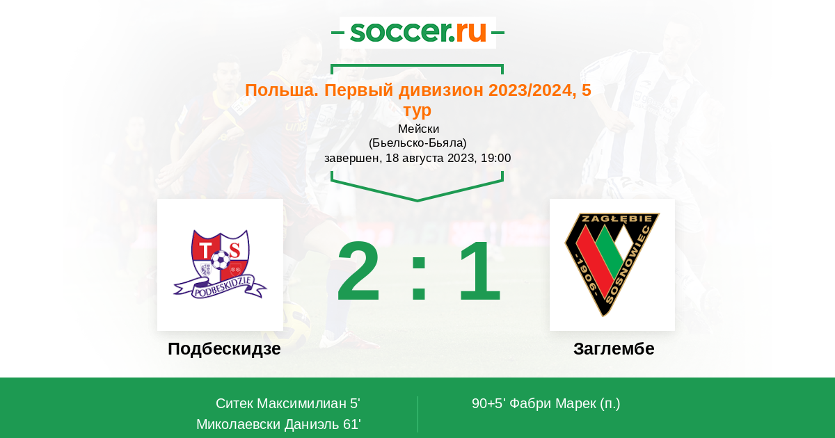 Протокол матча Подбескидзе против Заглембе