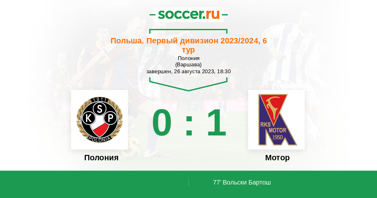 Протокол матча Полония против Мотор