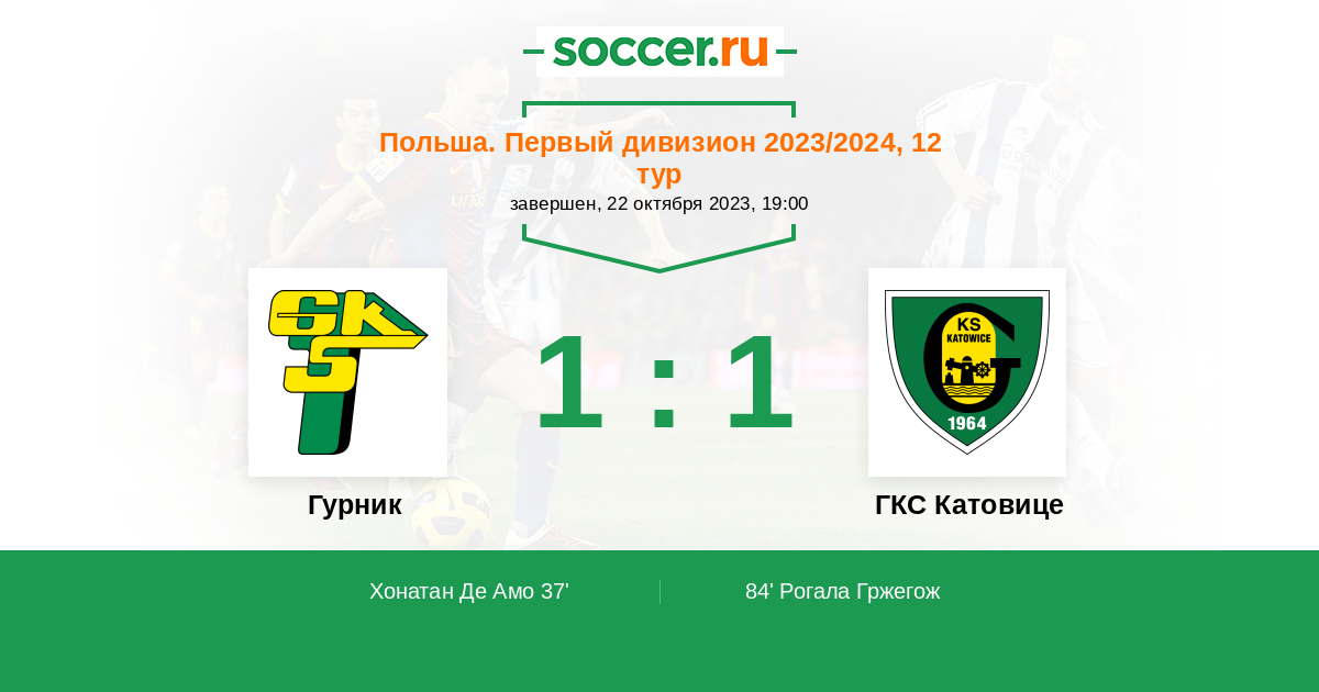 Протокол матча Гурник против ГКС Катовице