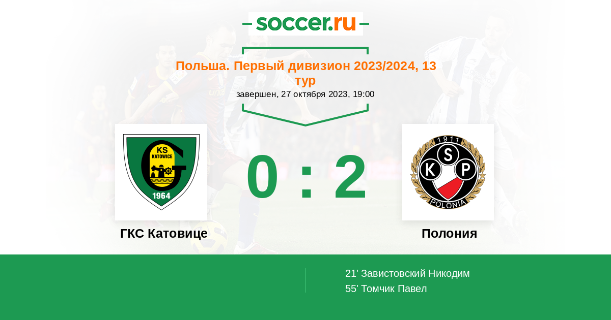 Протокол матча ГКС Катовице против Полония