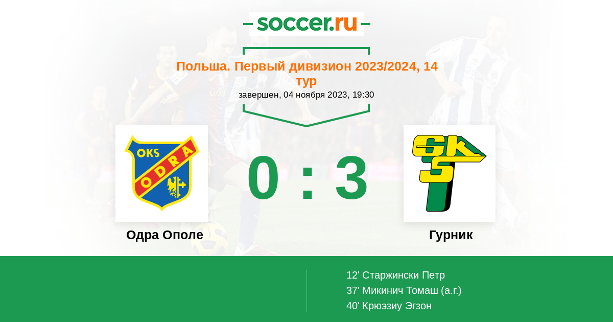 Протокол матча Одра Ополе против Гурник
