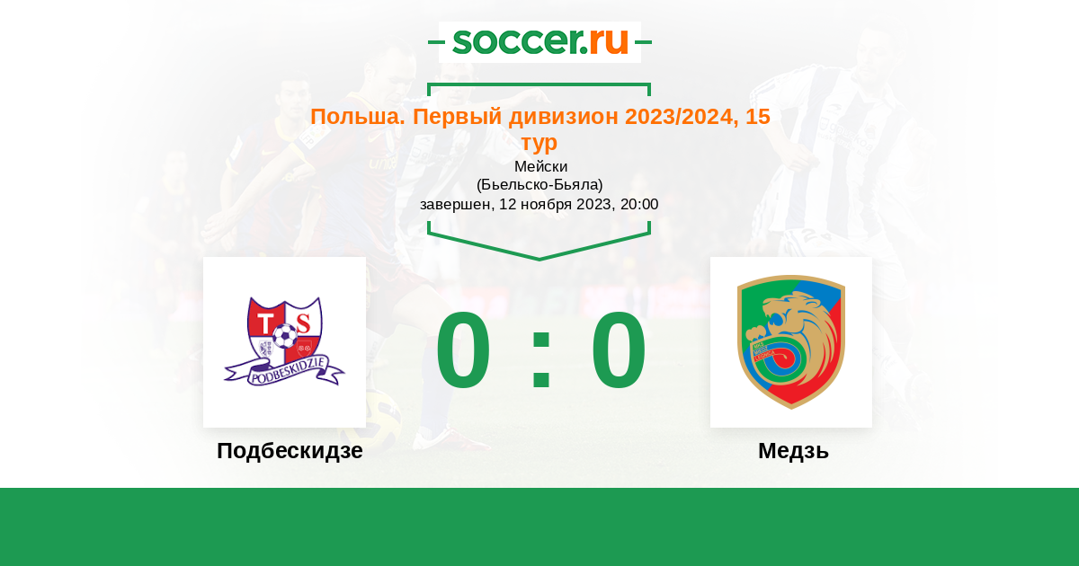 Протокол матча Подбескидзе против Медзь
