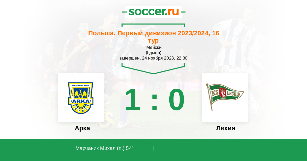 Протокол матча Арка против Лехия