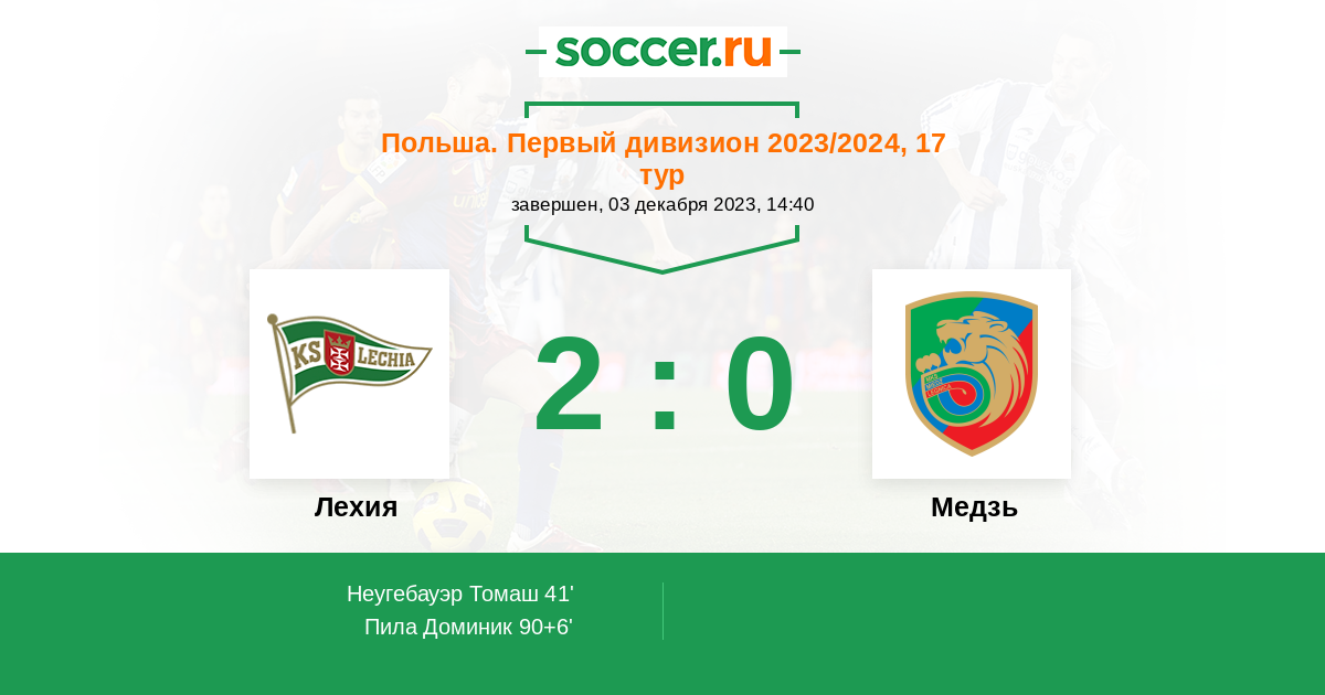 Протокол матча Лехия против Медзь