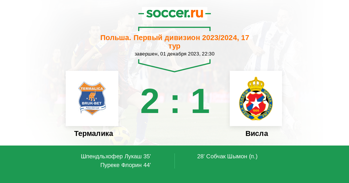 Протокол матча Термалика против Висла