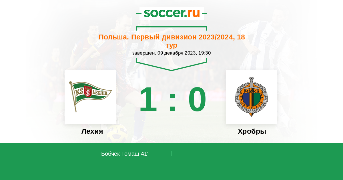 Протокол матча Лехия против Хробры