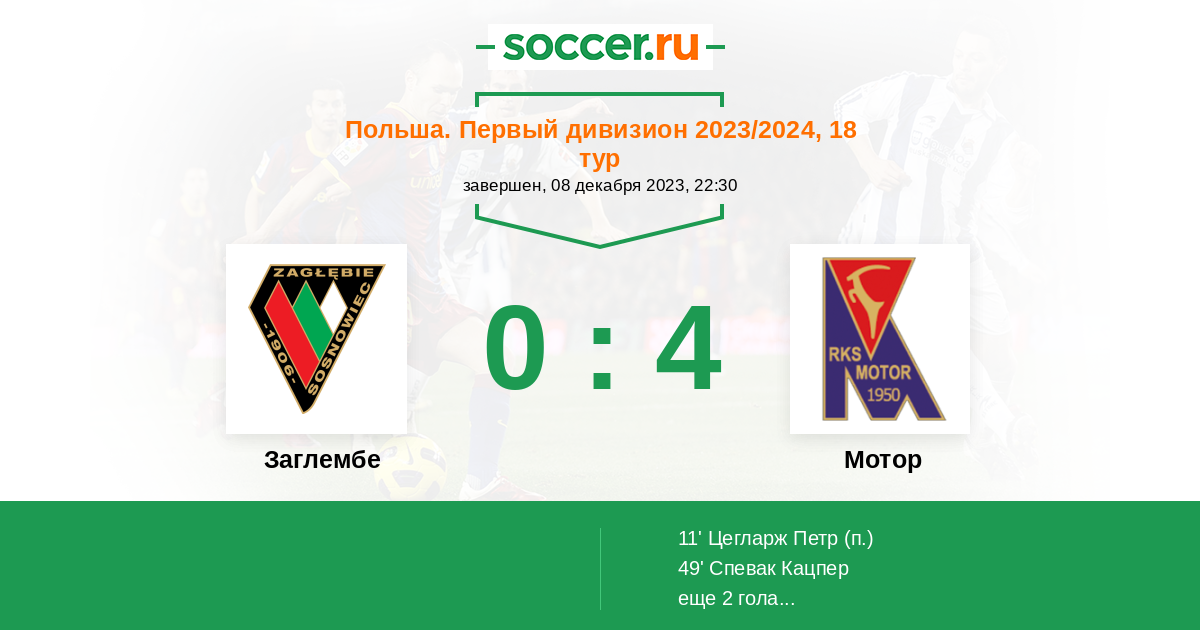 Протокол матча Заглембе против Мотор