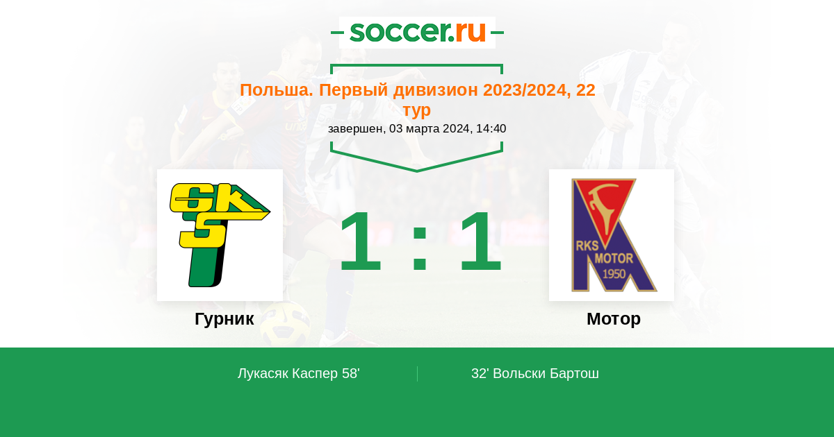 Протокол матча Гурник против Мотор