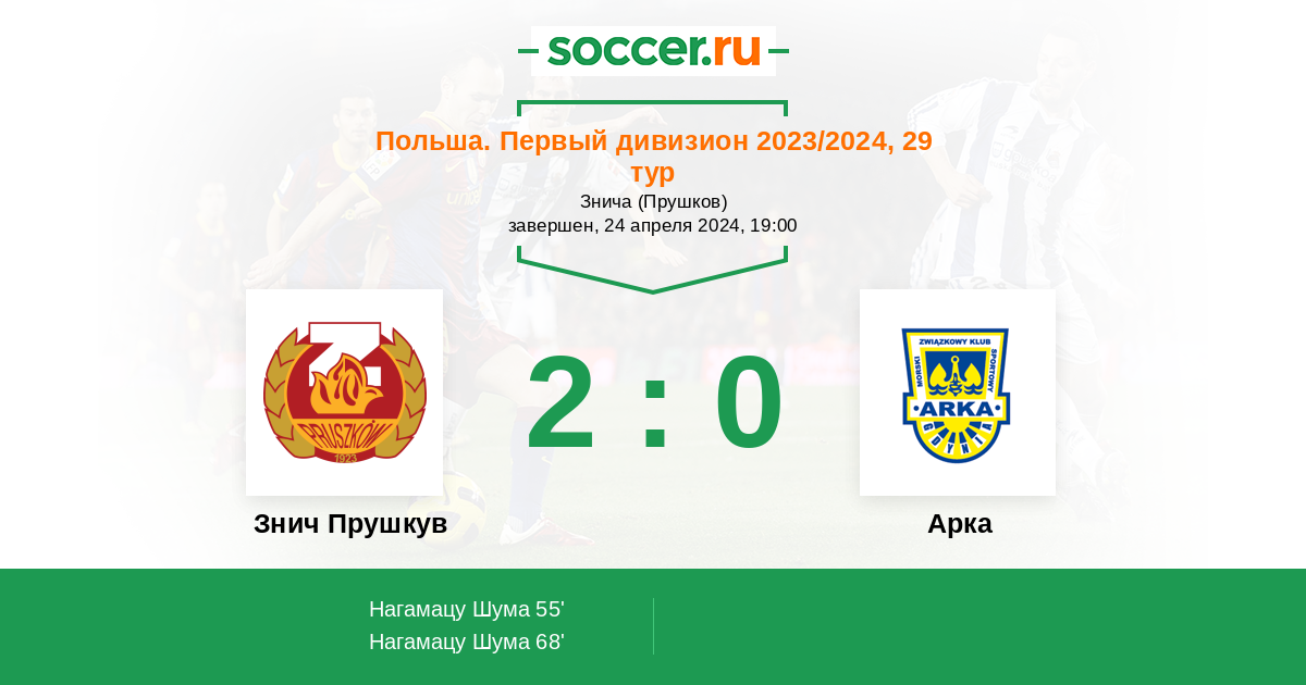 Протокол матча Знич Прушкув против Арка
