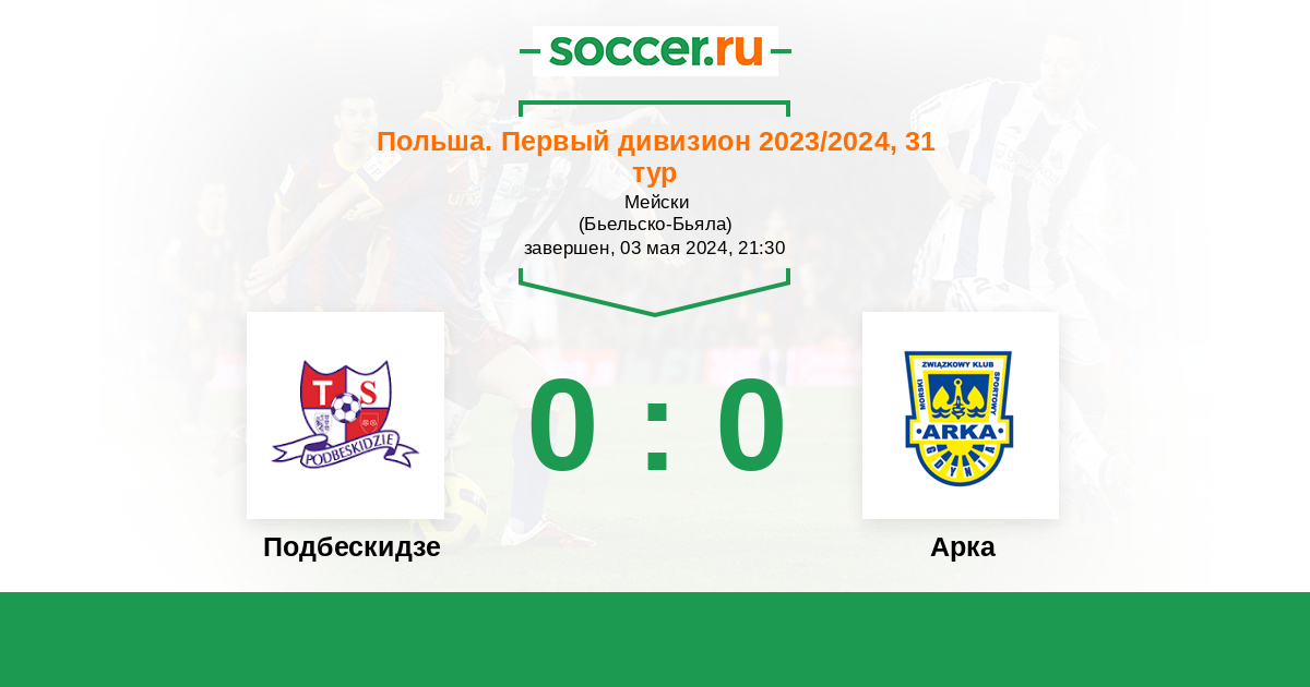 Протокол матча Подбескидзе против Арка