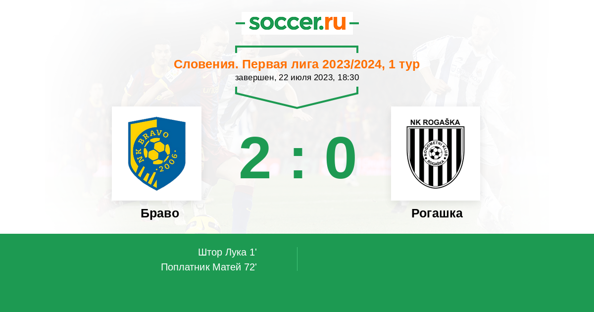 Протокол матча Браво против Рогашка