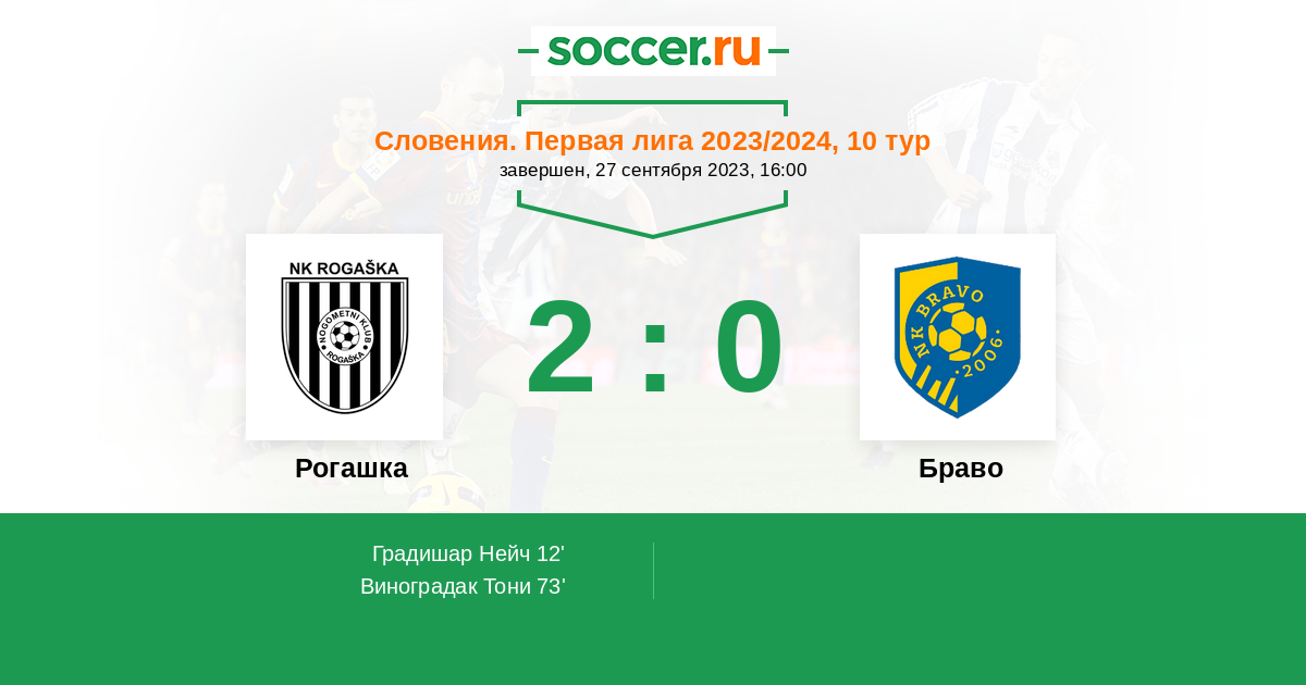 Протокол матча Рогашка против Браво