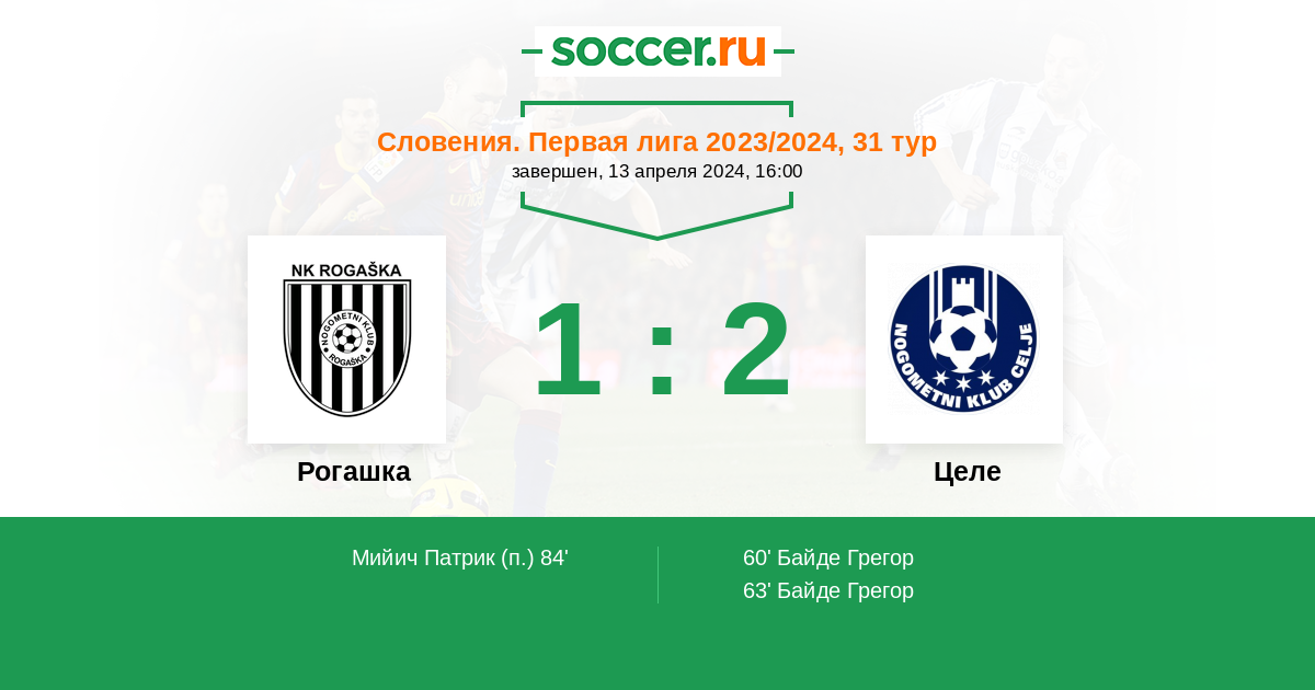 Протокол матча Рогашка против Целе