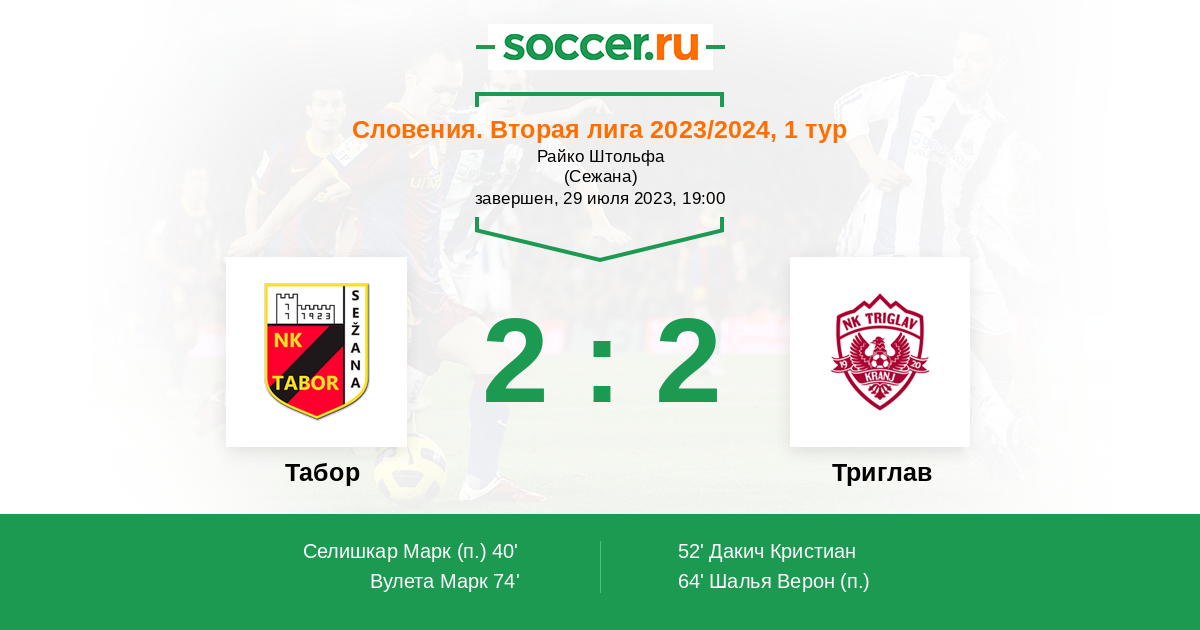 Протокол матча Табор против Триглав