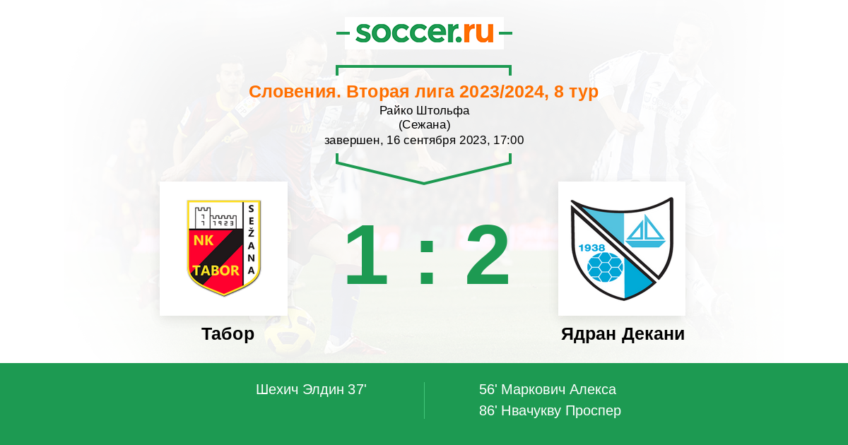 Протокол матча Табор против Ядран Декани