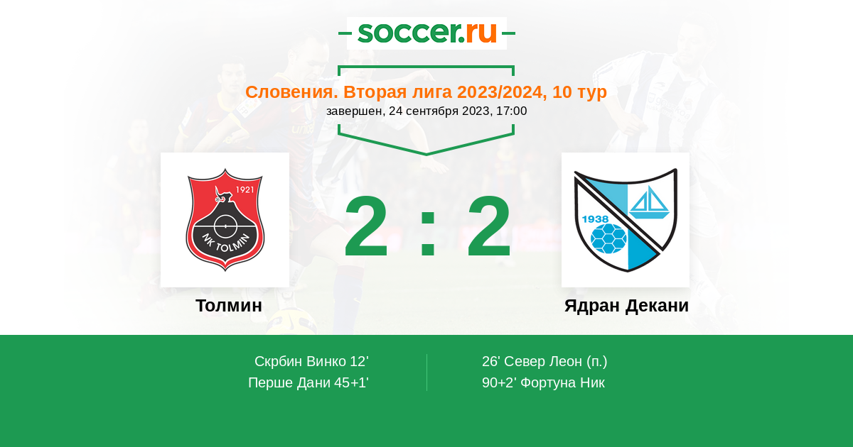 Протокол матча Толмин против Ядран Декани